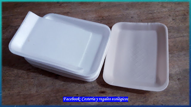 Además de las botellas y botes de plástico, también necesitamos algunas bandejas de unicel o tergopol, si están usadas y las re-utilizamos, mucho mejor...