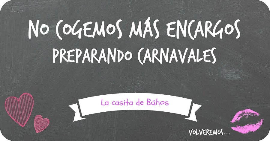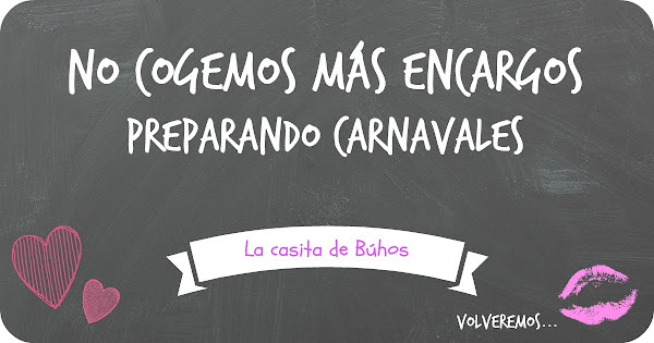 Tanto Cabdells como yo estamos con los disfraces para carnavales ( parte de nuestro trabajo a jornada completa). Así que toca no coger más encargos por unas semanas. Volveremos...