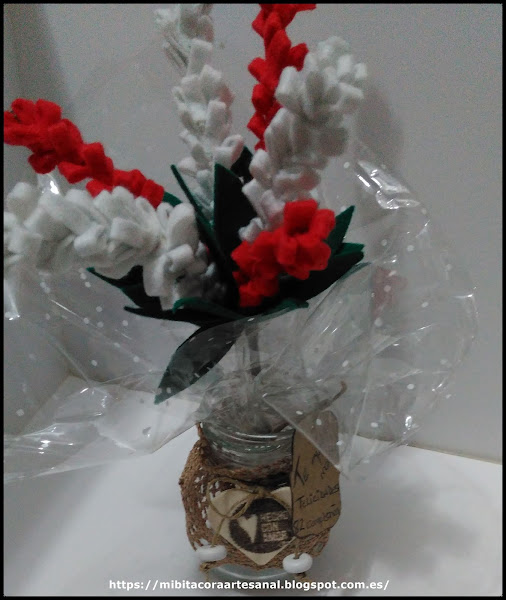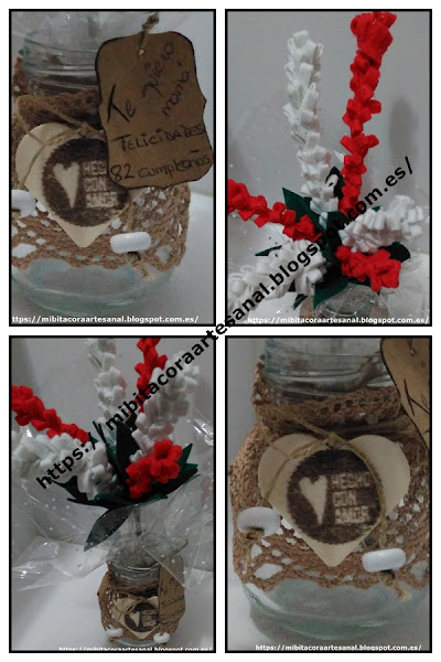 Pues como bien dice el título de esta entrada, jamás pensé que un botecito de tomate se convirtiese en un florero tan tan especial...UN REGALO PARA MI MADRE, por su 82 cumpleaños...qué feliz le hizo, lo ha puesto en su mesita de noche.