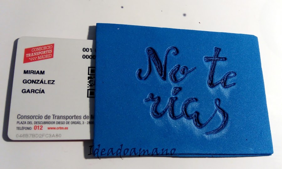 He querido probar dos técnicas que no había usado hasta ahora. Una me salió bien y la otra no... y lo he hecho para hacerme una funda para la tarjeta del abono transportes, que lo llevaba en una funda transparente que estaba ya más rota que rota... Y este es el resultado: