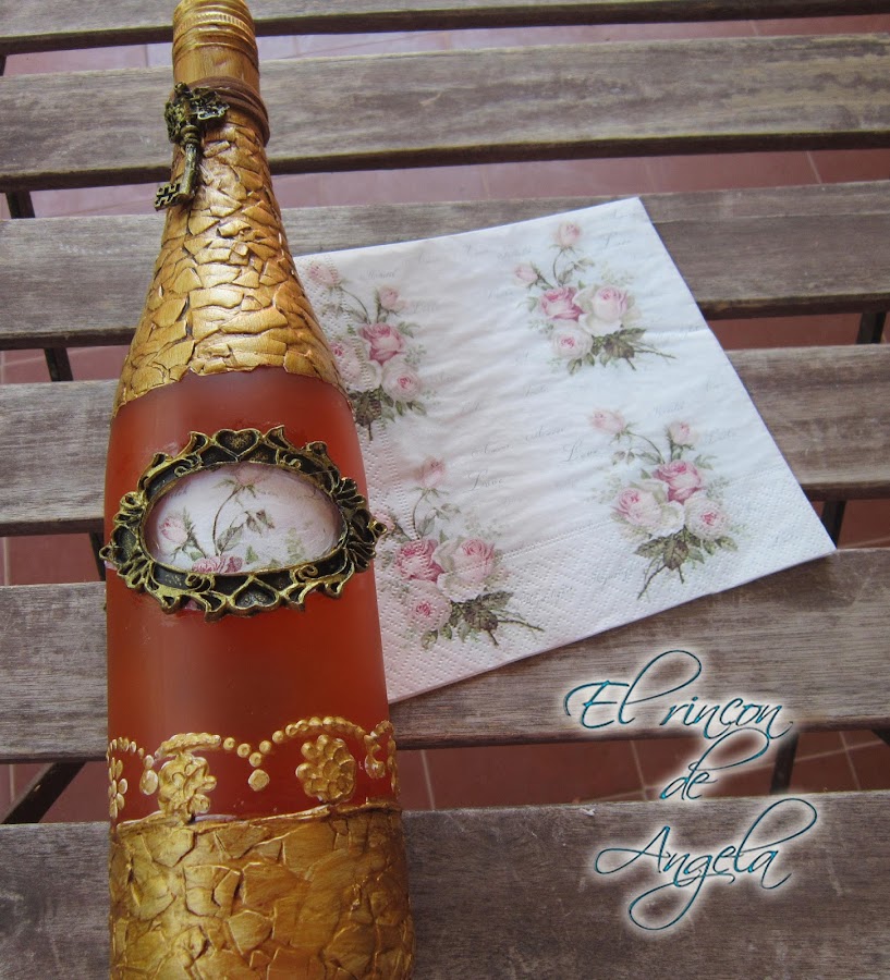 En este post, vamos a utilizar diversas técnicas, muy fáciles, para reciclar una botella de cristal. Hay botellas, tan bonitas, que da pena tirar. Eso me paso con esta botella, con un color tan vivo, que me inspiro este trabajo.
