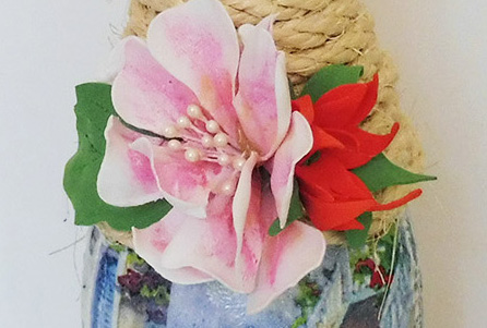 Para tapar la terminación de la cuerda, he pegado con silicona unas flores de foamirán, pero puedes usar cualquier tipo de flor o adorno que te guste.