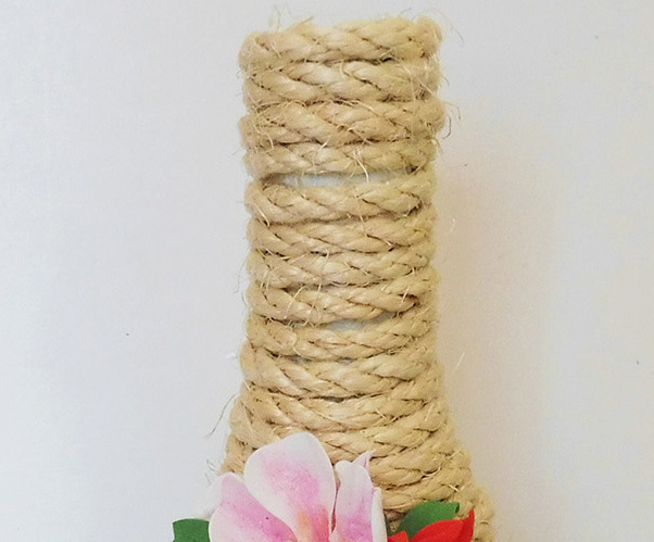 Para decorar la parte del cuello, puedes usar cuerda, lazo, trapillo, o pintura del color que te guste. En este caso he usado cuerda de esparto, que he pegado con silicona.