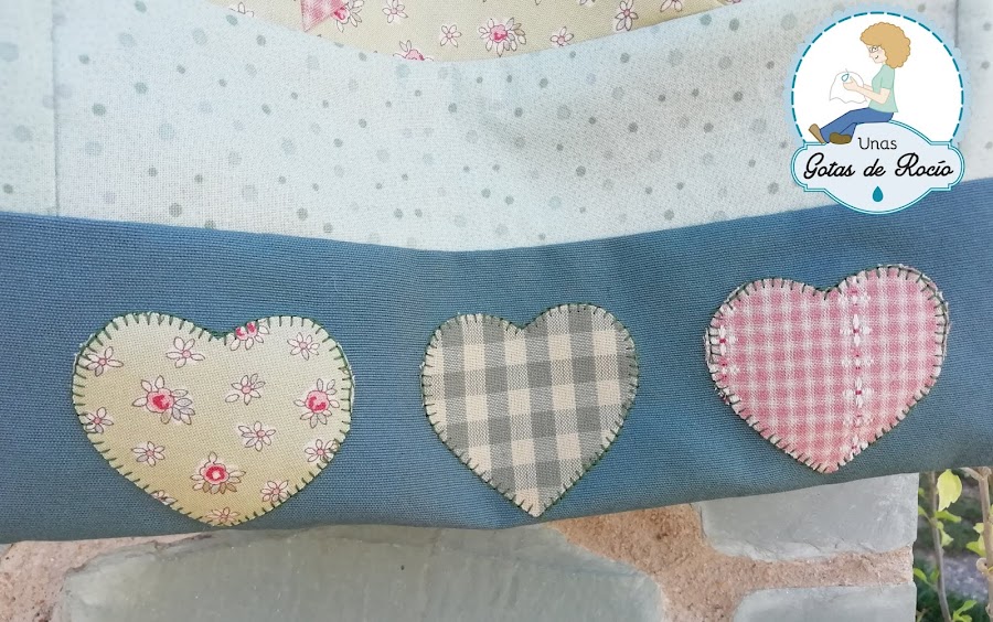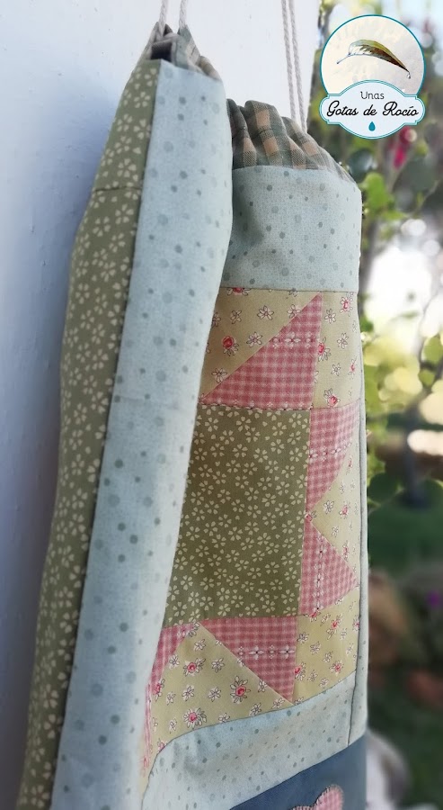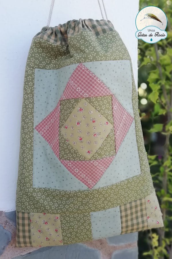 Ha sido un disfrute hacerla: comprando las telas que más me gustaban (diferentes estampados verdes y un rosa que hace un bonito contraste), haciendo cálculos de medidas y eligiendo bloques de patchwork sencillos pero efectivos.
