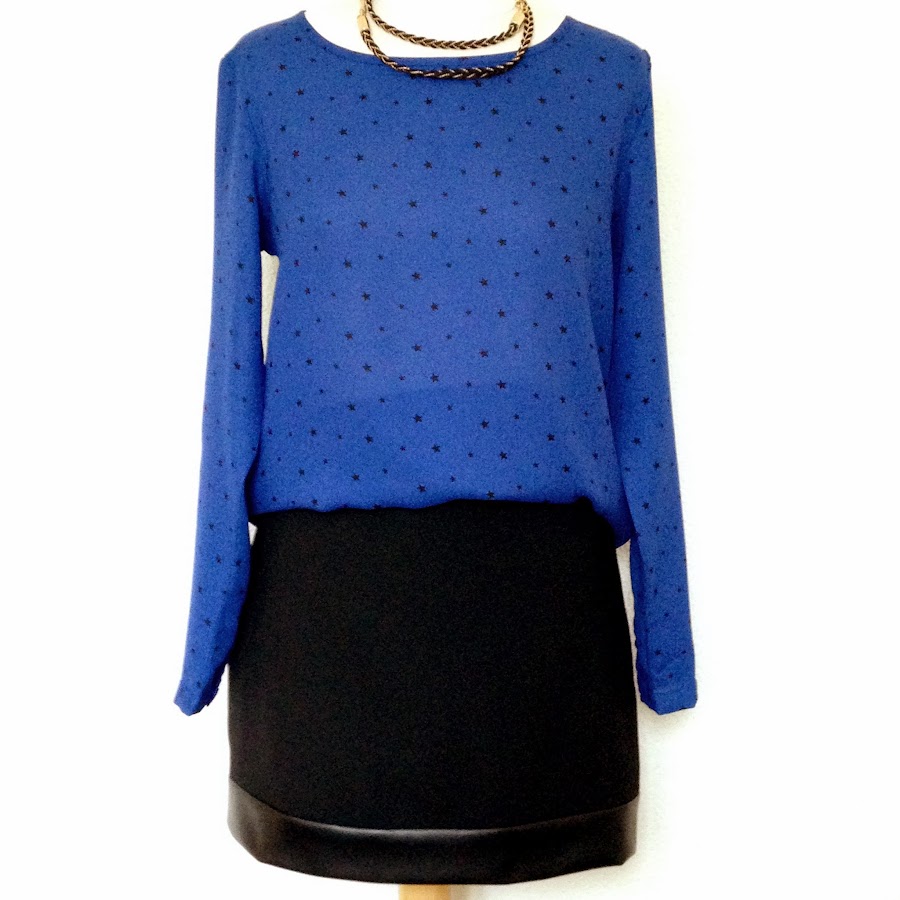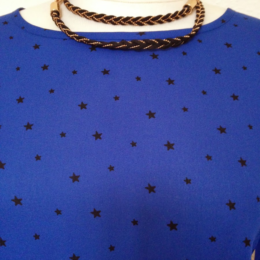 En esta ocasión me voy a arriesgar con esta blusa recién adquirida en rebajas (springfield Woman) azul klein con motivos de estrellas... Y es que es taaan mona
