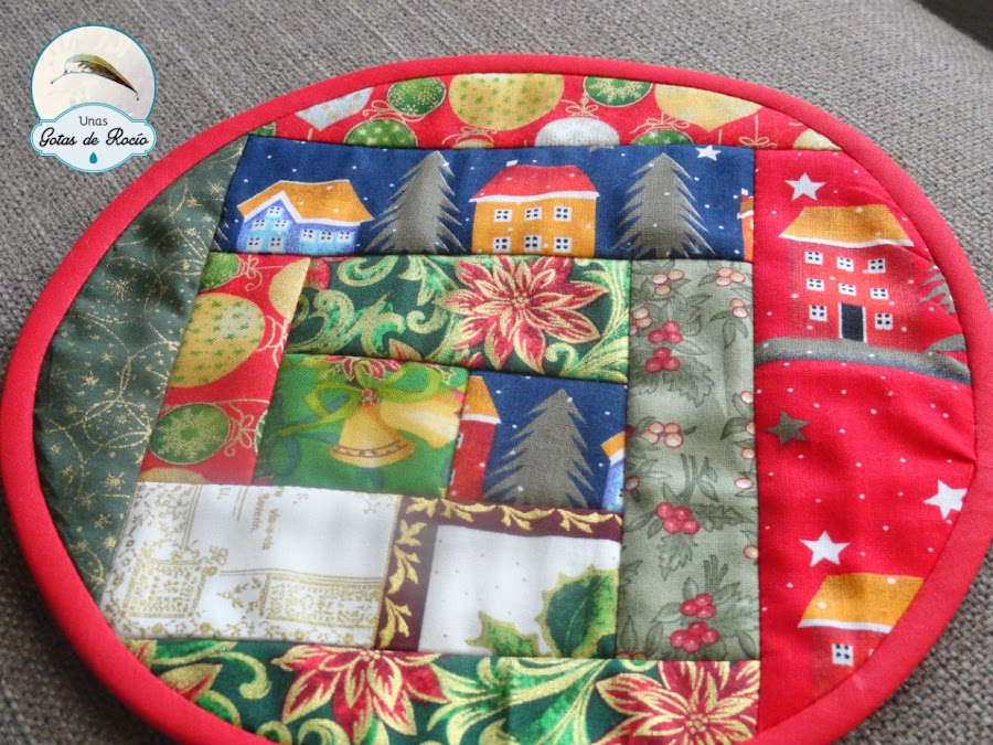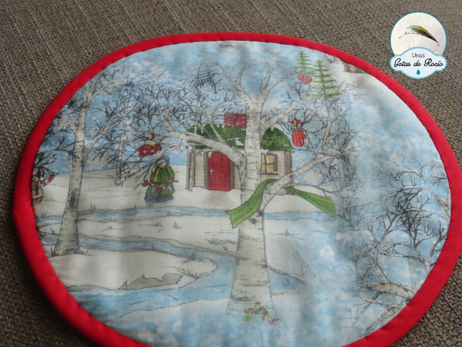 En esta ocasión les he mandado como regalo un tapetito con telas navideñas que ellas bien conocen. Para el revés escogí una estampa invernal preciosa, que permitiera usarse por ese lado si así gustase.