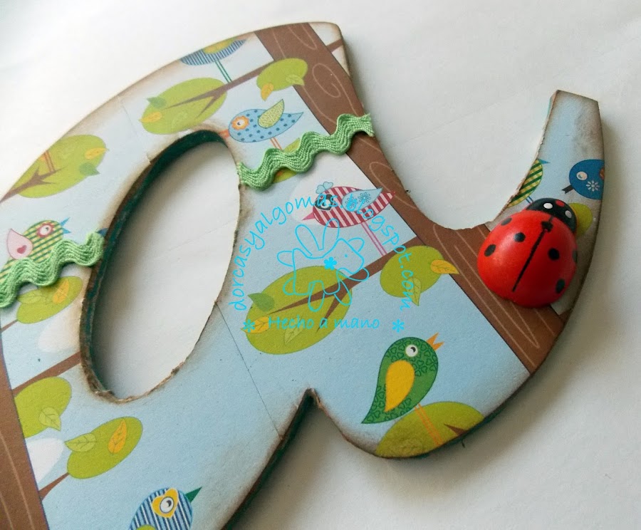 Muy buenos días gente creativa: Hoy os traigo el nombre de mi sobrina Sara en madera.Va adornado con papel de scrap, botones, cinta de zig-zag y una mariquita. Espero que os haya gustado. Nos vemos en la siguiente entrada. ¡¡¡¡¡Bendiciones!!!!!