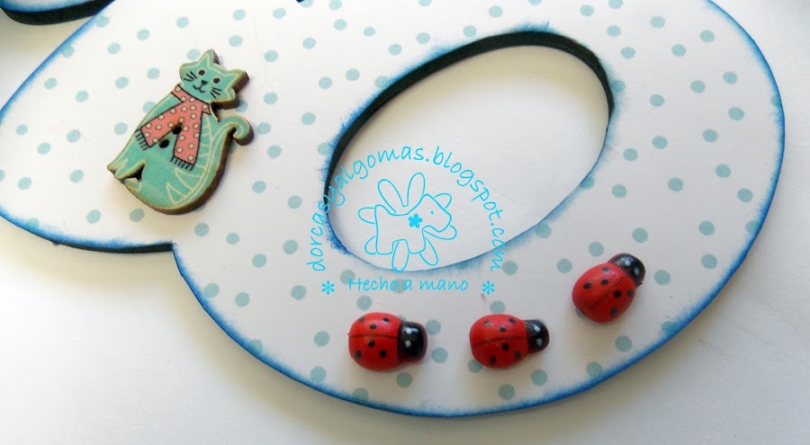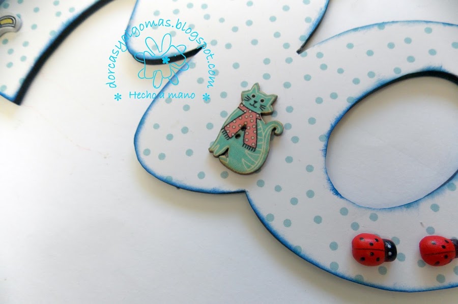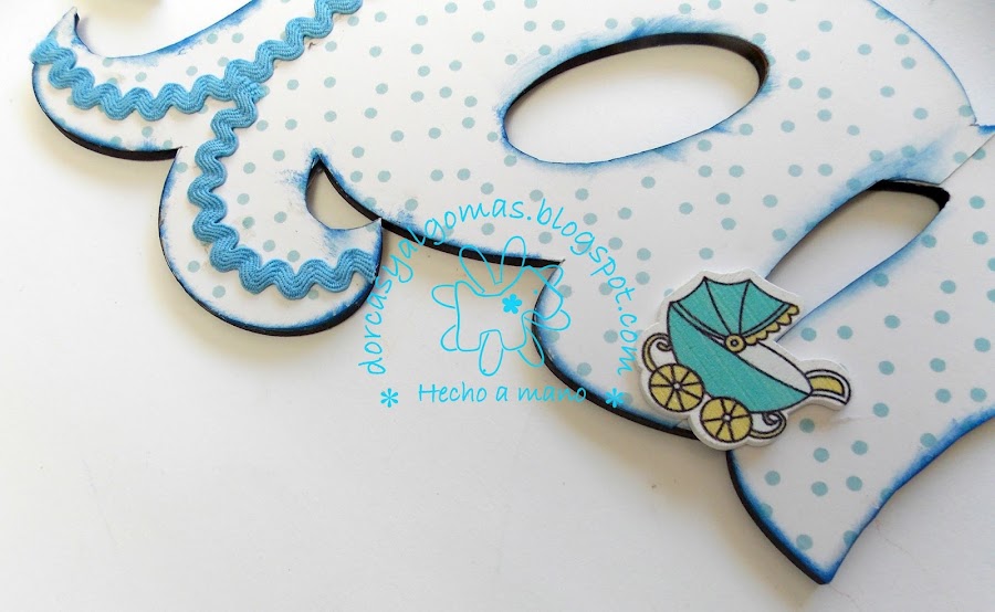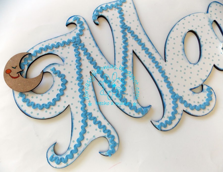 En esta ocasión os muestro el nombre de Mario en madera y decorado con motivos infantiles pues se trata de un bebé.