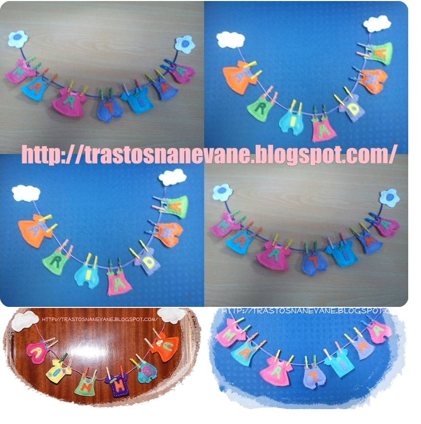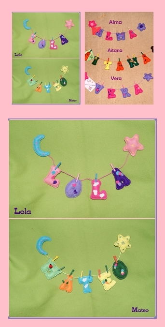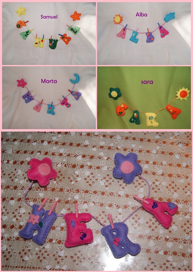 Hace unos meses os enseñaba las cositas que le había hecho a María y Daniela, dos gemelas preciosas que ya tienen 8 mesecitos.Creo recordar que subí al blog los pechitos "Casitas" y las pañaleras (bolsas para guardar 3/4 pañales), pero revisando hoy fotos, todavía no os había enseñado sus nombres de fieltro para completar sus conjuntos remolineros. La peculiaridad de los nombres de estas ...