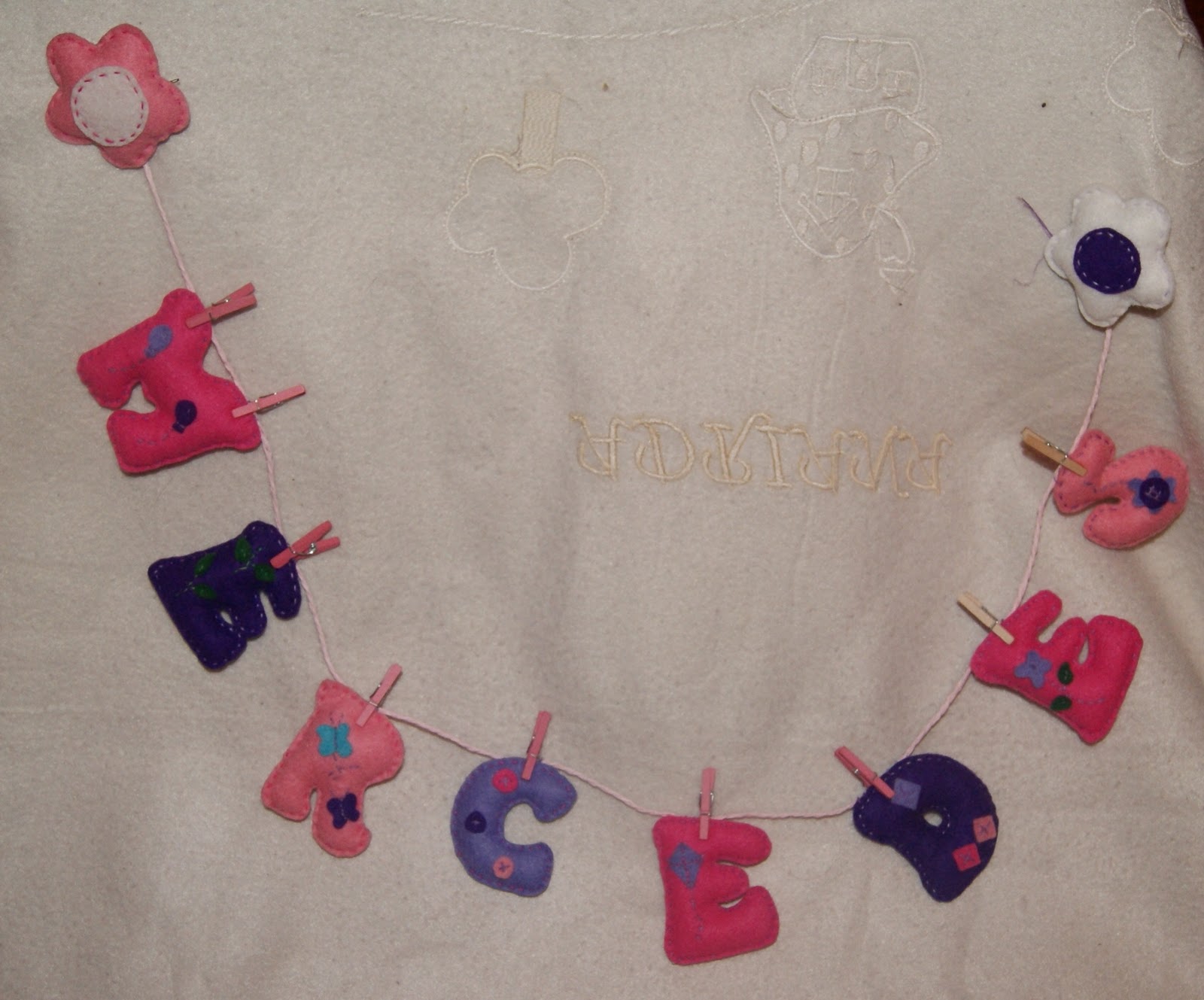 Hace unos meses os enseñaba las cositas que le había hecho a María y Daniela, dos gemelas preciosas que ya tienen 8 mesecitos.Creo recordar que subí al blog los pechitos "Casitas" y las pañaleras (bolsas para guardar 3/4 pañales), pero revisando hoy fotos, todavía no os había enseñado sus nombres de fieltro para completar sus conjuntos remolineros. La peculiaridad de los nombres de estas ...