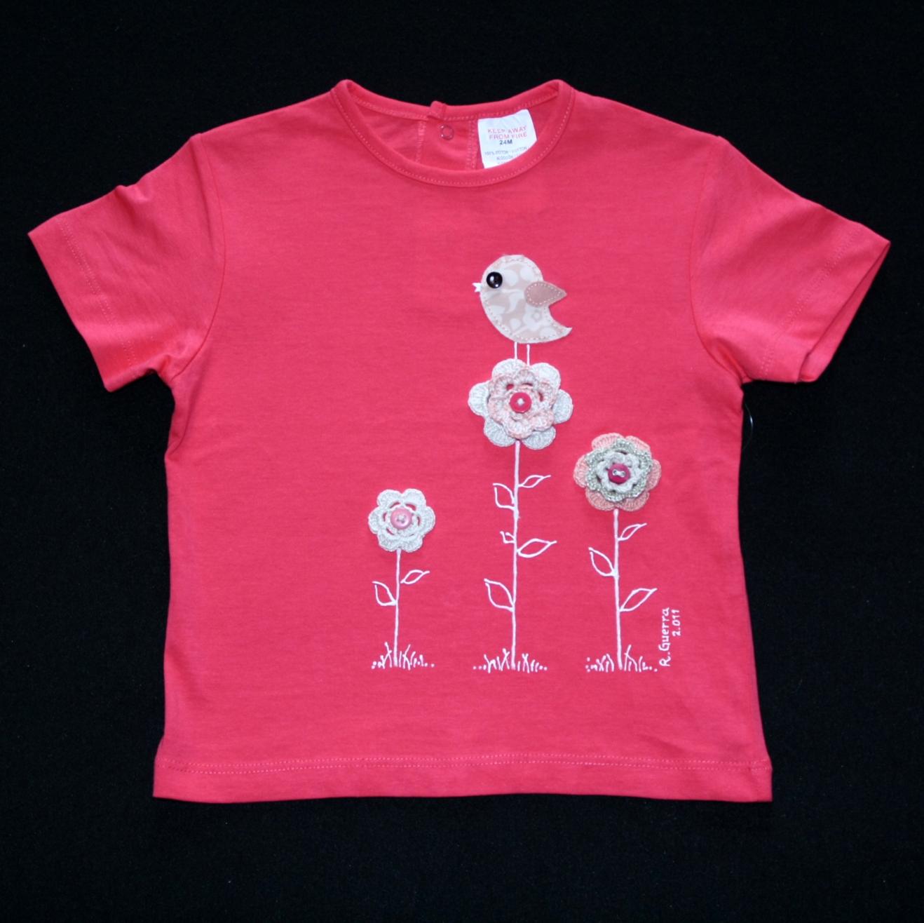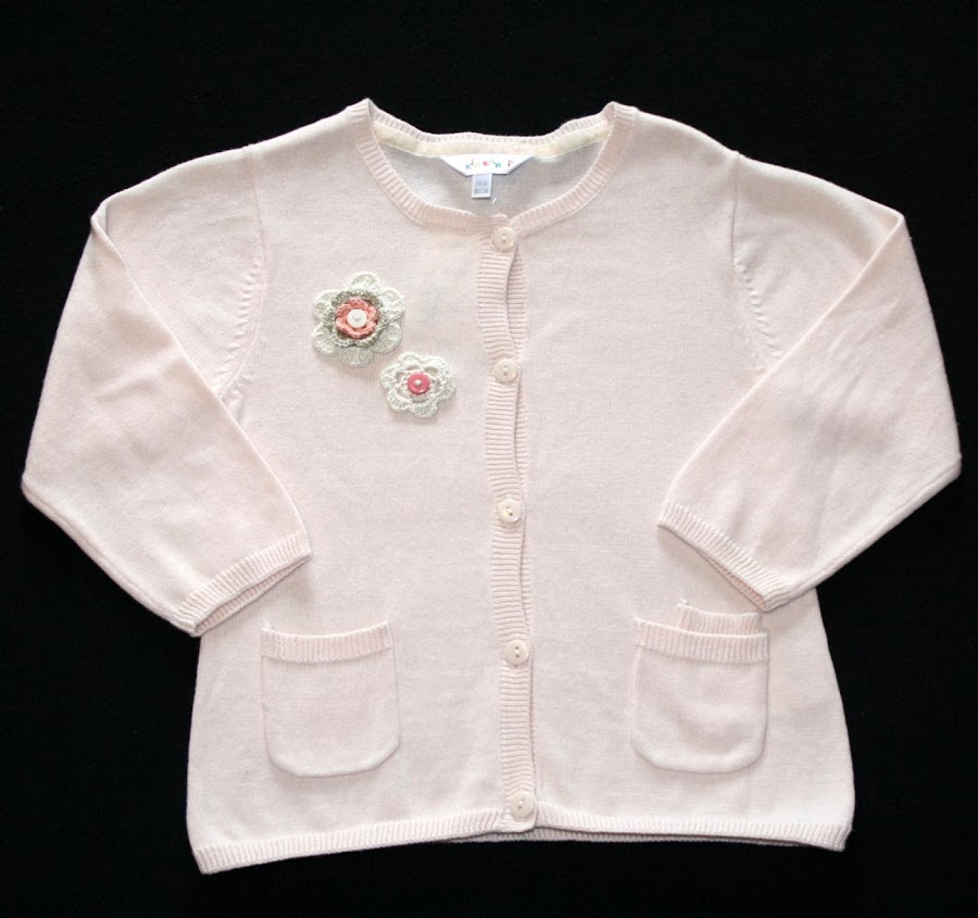 Y para completar el regalo, le compré una rebeca en color rosa muy claro, que adorné con un par de flores iguales que las de la camiseta: