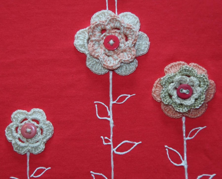 DETALLE DE APLIQUE DE FLORES DE CROCHET