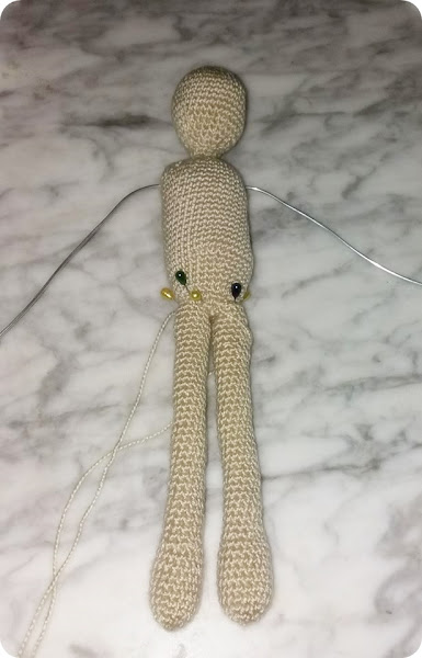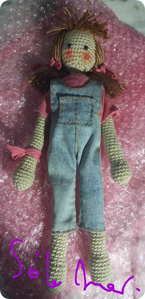 Es un amigurumi como todos , exceptuando , que en esta ocasión le he puesto un armazón de alambre , para poder articularlo , y poner a Nora en diferentes posturas .