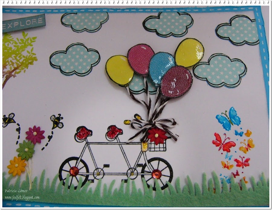 Los globos y las mariposas llevan glossy, las abejas zumbeantes y la bici stickles, aún no sé ¡cómo un día pude vivir sin ellos!