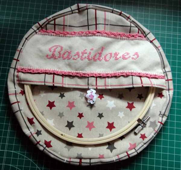 Si le dais margen suficiente, cabe incluso el bastidor con la tela que estéis bordando, y así queda protegido.