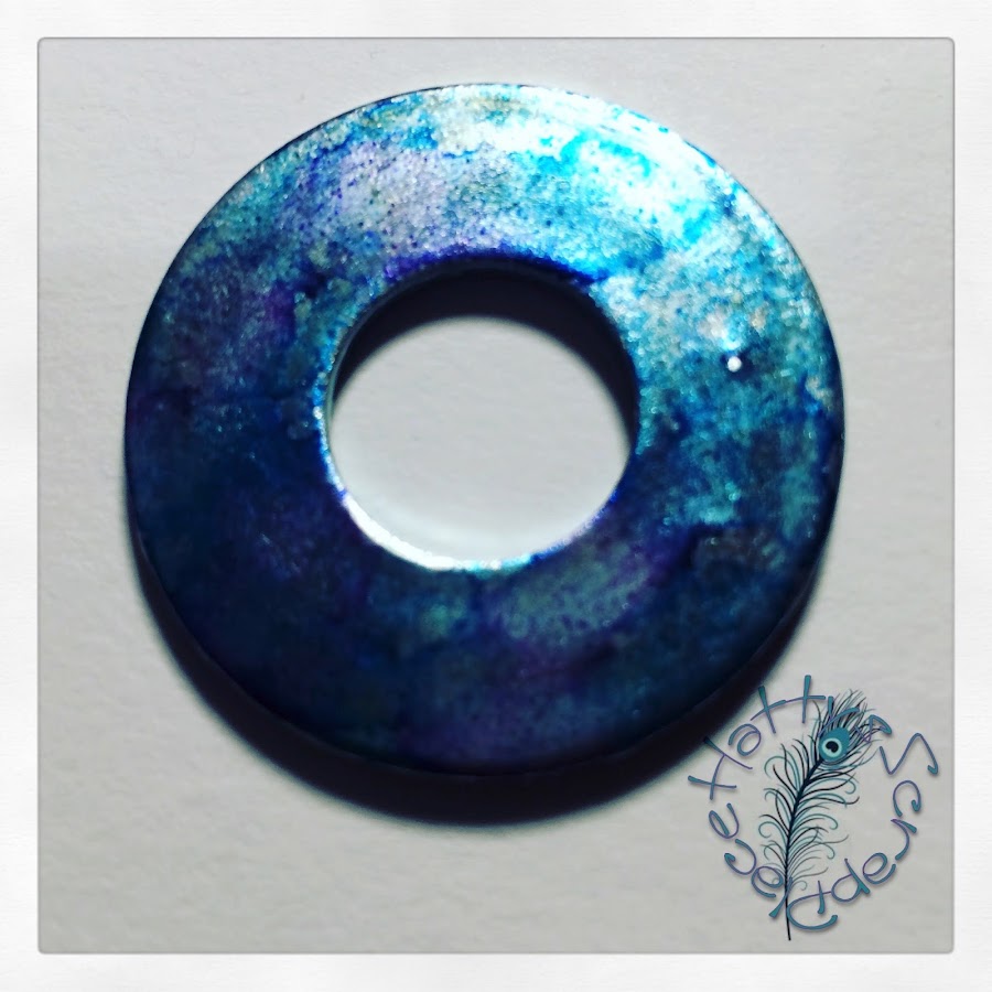 Esta es la única que no hicimos sobre acetato, sino sobre un arandela de hierro, sobre la que aplicamos las tintas con el aplicador y después hicimos embossing.