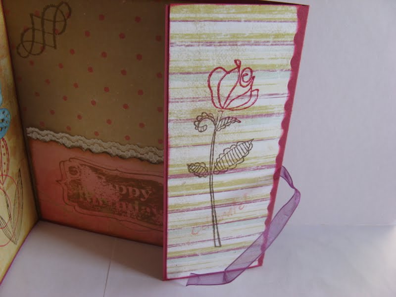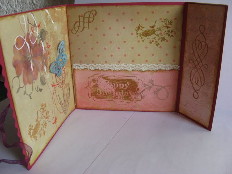 hace unos dias , en un rato que tenia libre, me vino la inspiracion scrapera; tenia que hacer algo de scrap, y me puse ha ahcer una tarjeta que servira para algun aniversario. Aquel dia tenia muy claro de como hacerla y asi que cogi los papeles; las tintas; los sellos y las tijeras y me puse en ello. No se si me ayudo que el fin de sema anterior habia ido a un feria y habia comprado papeles nuevos. A lo mejor eran las ganas de estrenarlos.