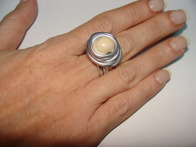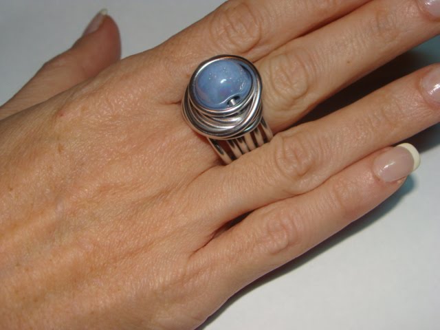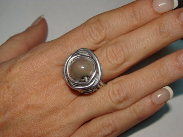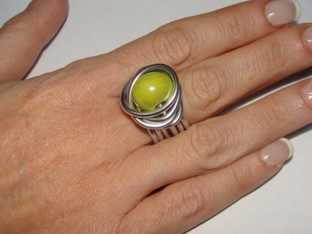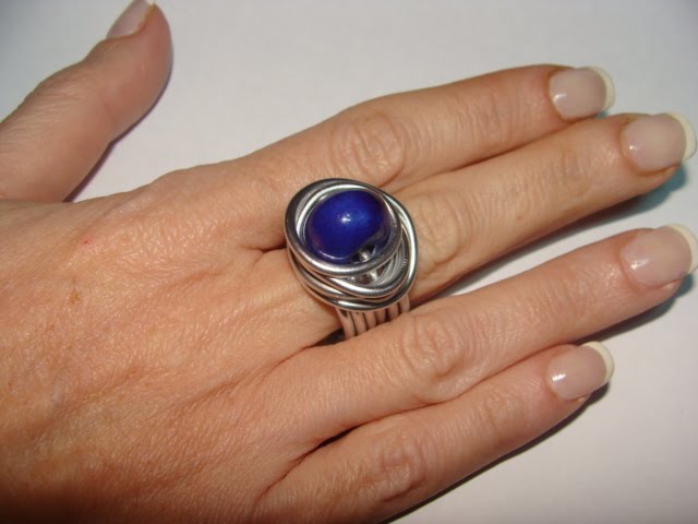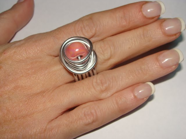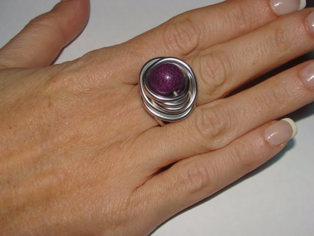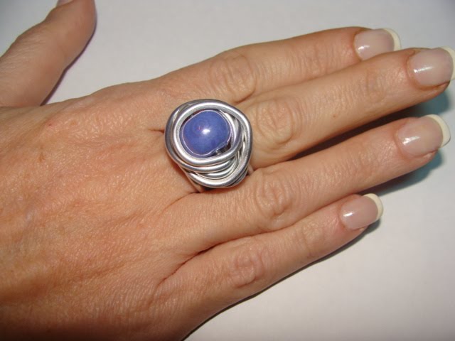 He estado haciendo una serie de anillos como este: Me parecen preciosos, son fáciles de hacer y quedan estupendos, no os parece? Unos centímetros de aluminio, un abalorio vistoso y un palo medidor de anillos es todo lo que se necesita para hacerlo! Mirar el efecto de la luz al atravesar el cristal!