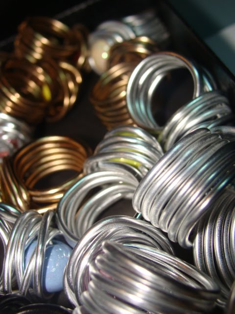 Hola a tod@s ! Hoy os traigo una buena tanda de anillos de alambre de aluminio que hice en un ratito que me puse. Hay tardes que la pasas haciendo y haciendo sin obtener resultados satisfactorios y otras tardes, como la de ayer, que todo me salió bien a la primera y aprovecho la ocasión para enseñaroslo. Espero que os guste y os sirva de idea para los vuestros. Xaito ! y ... ¡ Hasta la próxima ! ...