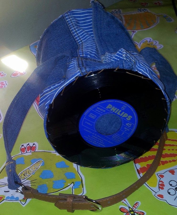 Además de Relojes hago más cositas con los vinilos...por ejemplo :bolsos!!