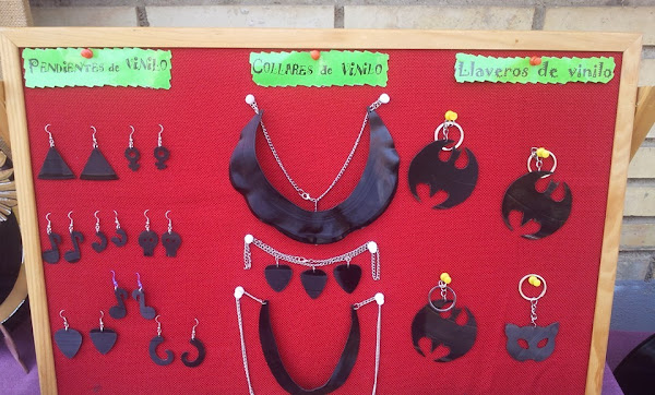 Y ahora ya paso a enseñaros las cositas nuevas, no e dejado de trabajar el fimo,vamos ni loca!!! jajaja; pero me he especializado en el reciclaje de -Discos de Vinilo-.