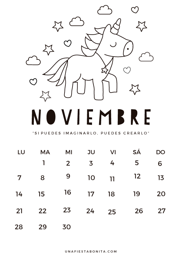 Llega Noviembre y con este hermoso mes dos calendarios gratuitos para que descargues, imprimas y pintes con los colores que más te gustan . Uno de Mandala y otro muy lindo de Unicornio.