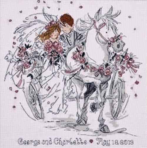 Precioso gráfico de unos novios en carruaje...
