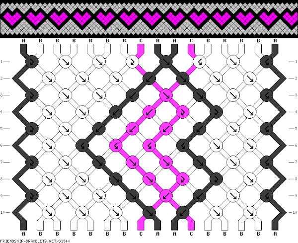 Este es un ejemplo de los cientos que podemos encontrar en la red, para que os animéis. Fuente http://friendship-bracelets.net/