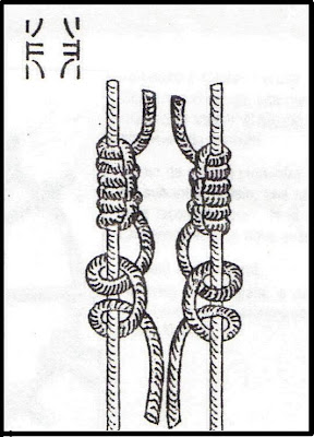 En mi post anterior, expliqué sobre la importancia de trabajar los hilos necesarios e inmovilizar otros. A esto habría que añadirle que también debemos poner mucha atención acerca del hilo que estamos trabajando, para utililzar en cada nudo el hilo correcto.