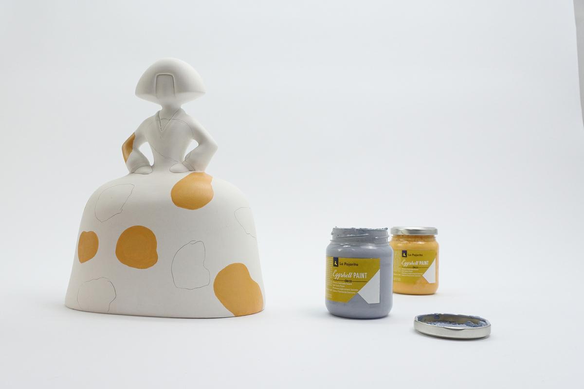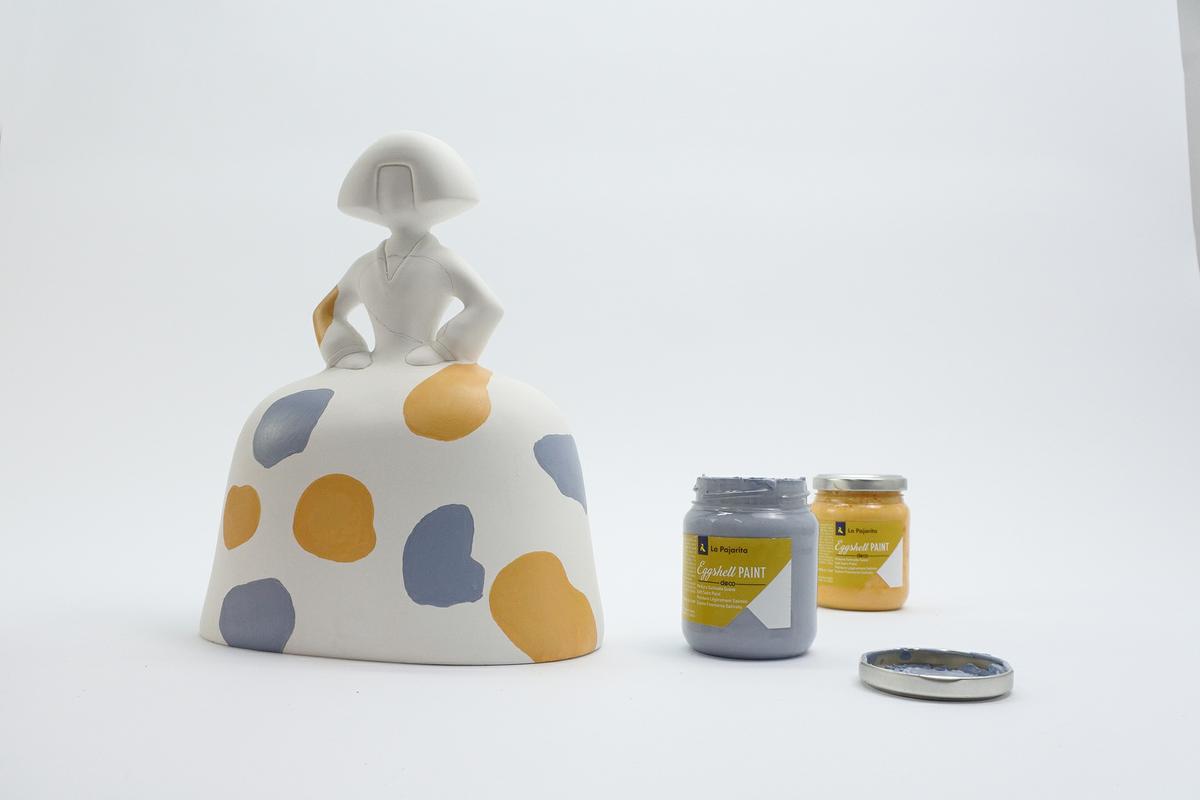 En nuestro caso hemos elegido dos colores de la gama Eggshell de Pinturas La Pajarita: Vintage Yellow y Serenity Blue.