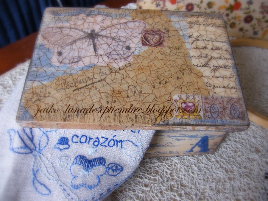 Pues casualidades (supongo..) de la vida, un día le comenté a una amiga que necesitaba ese tipo especifico de caja de vino, con su tapa deslizante etc, y la suerte fue que esa amiga, además de oírme, me escuchó jajjajaja, y se quedó con la copla... y a los pocos días me llama y me cuenta que ha visto una de esas cajas junto a un contenedor!!! y le dije.. -y la habrás cogido, verdad??!!!!! y me dice.. -pues no, me ha dado cosa y me he ido a comprar, pero al volver, me he atrevido y te la he traído!! eso si, me ha dado mucha vergüenza!! jajajja que pobre... y por fin.. HABEMUS CAJA!!! así que ya solo faltaba ponerme a ello y os la enseño.