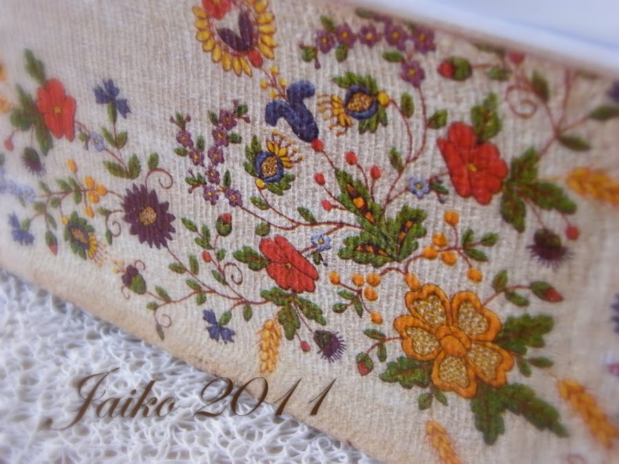 Me he pasado unas cuantas veces por la caja donde almaceno las servilletas y no terminaba de decidirme, hasta que se encendió la bombilla y elegí una en la que usaría de nuevo gasa de algodón para imitar la textura de la arpillera, ya que la servilleta escogida lleva este dibujo y le va al pelo.