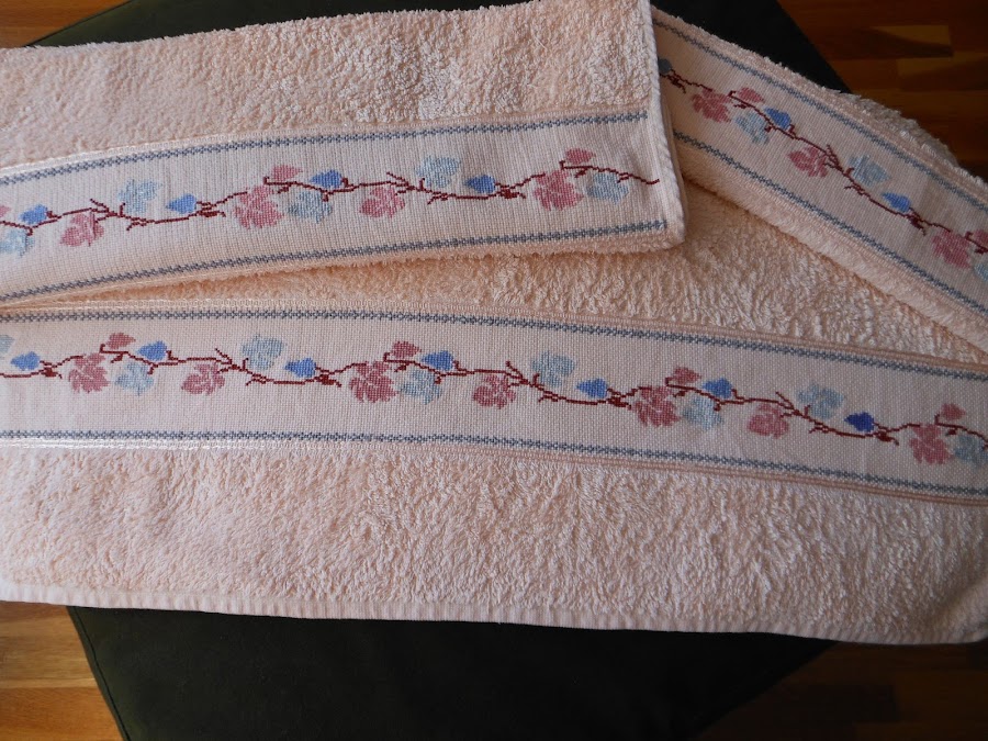 Y ya que estaba puesta con el px, terminé este juego de toallas que YA ERA HORA, se han hecho viejas esperando su cenefa jajajaja.