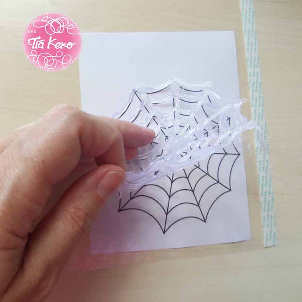 Cuando la silicona se ha secado completamente la retiramos de la transparencia y nos quedarán unas telas de araña de silicona transparente, igual que en la imagen de más abajo.