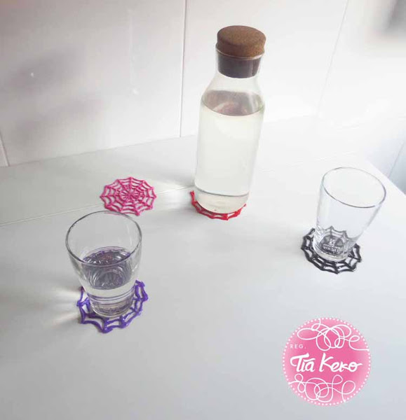 Y ya tenemos nuestros posavasos molones de tela de araña para que decoren nuestra mesa en esta fiesta tan divertida.