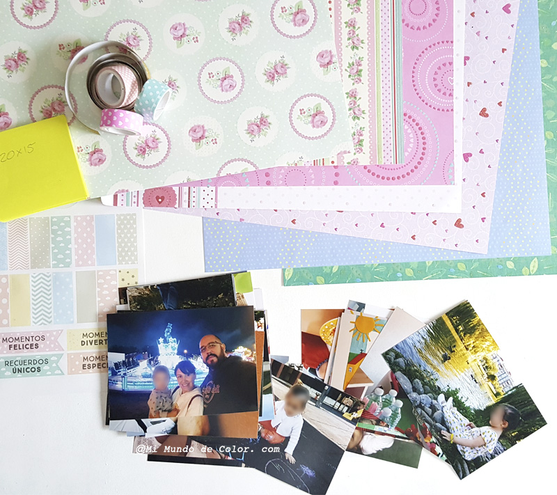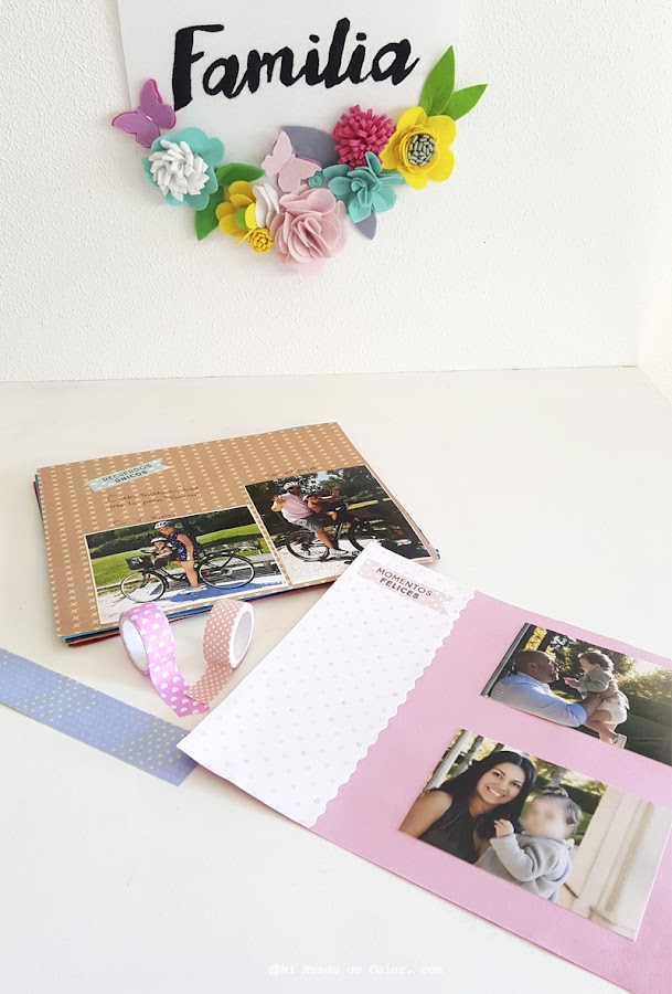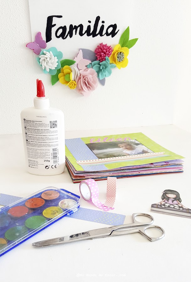 En la guardería nos explicaron que el álbum es para que los peques se sientan acompañados en sus momentos tristes y de extrañar a sus papis y la casa. Y de lo mucho que les reconforta. Así que con un poco de maña os enseño. Para el álbum he utilizado unas cartulinas que estaban vendiendo en el Lidl (supermercado de España). Pero que sin duda lo puedes conseguir en papelerías y tiendas de arte. También compre unas cuantas cartulinas de colores tamaño A4. Necesitamos pegamento de uso escolar, tijeras, pegatinas, washi tape, pinturas, y claro las fotos que mas les guste y le de buenos ánimos a la peque.
