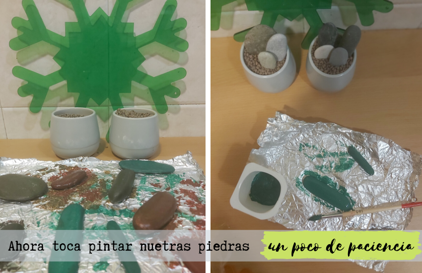 Yo por mi manera de ser, lo que peor llevo es lo de esperar. Porque claro, con la forma que tienen las piedras, primero hay que pintarlas por un lado y luego por el otro. No las toques... no seas impaciente.