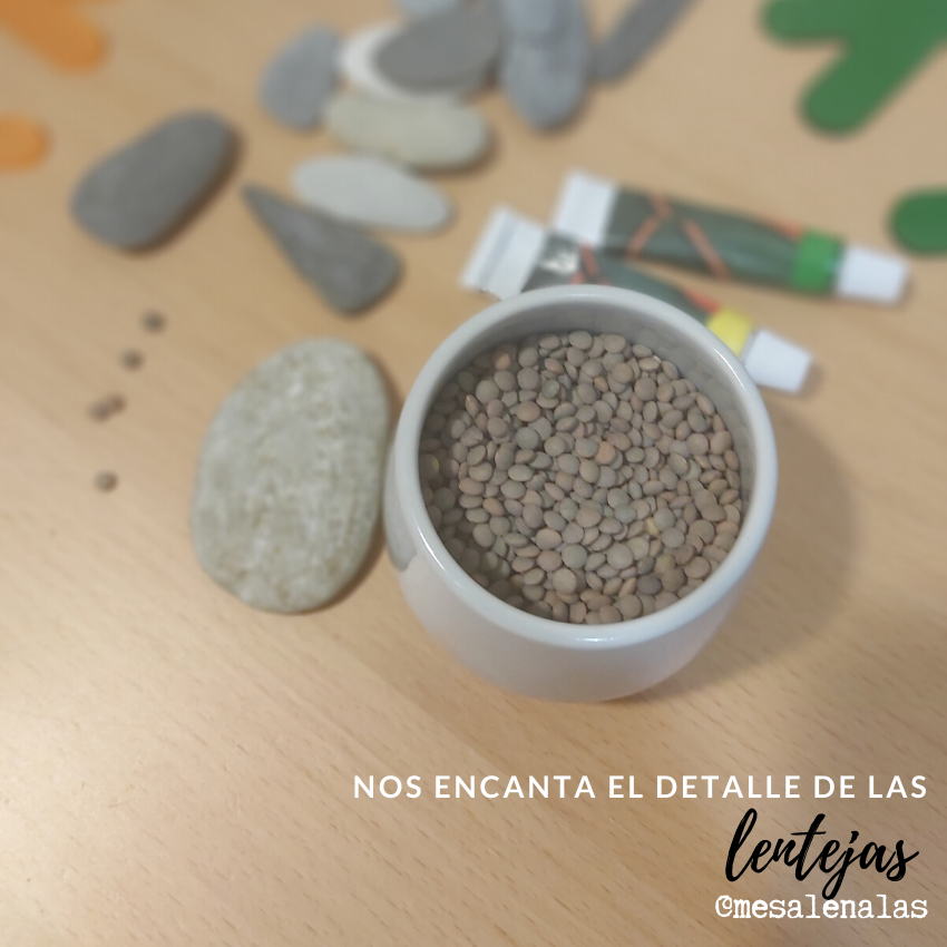Ah, en vez de tierra he puesto lentejas. Me encanta como queda con el toque verde de los cactus.
