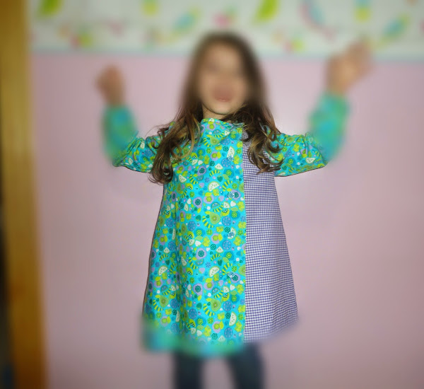 Me gusta el contraste de dos telas, mi idea era una bata con la tela estampada y la de vichy que fuese en turquesa o verde lima, pero como no lo encontré tuve que coger otra vez morado, esta vez el cuadrado es más pequeño.