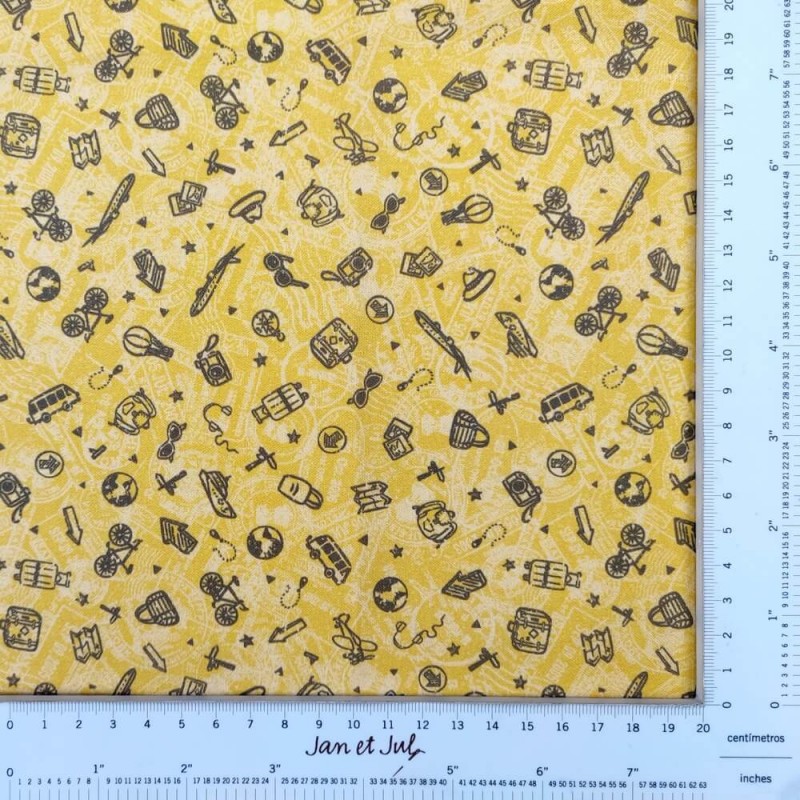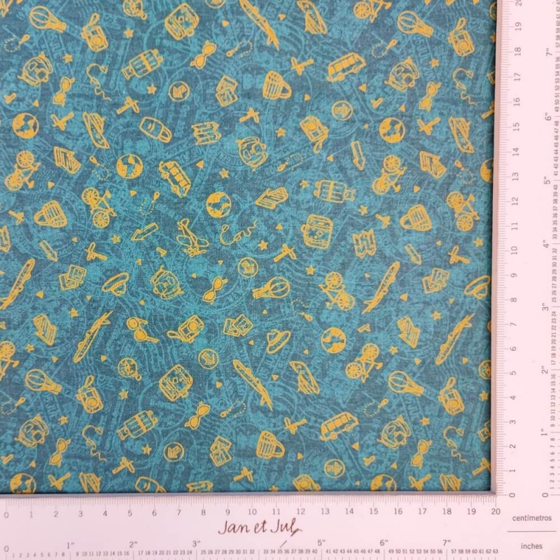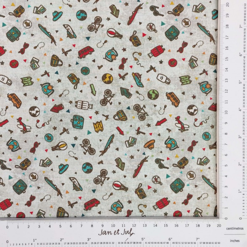 Para acompañar estas dos telas en tus proyectos de manualidades con telas también hemos diseñado estas preciosidades que verás a continuación con dibujos de temática de viajes como maletas, mapamundi, brújulas, aviones, gafas, autobuses, flechas, cámaras de fotos, bicicletas, mochilas,..