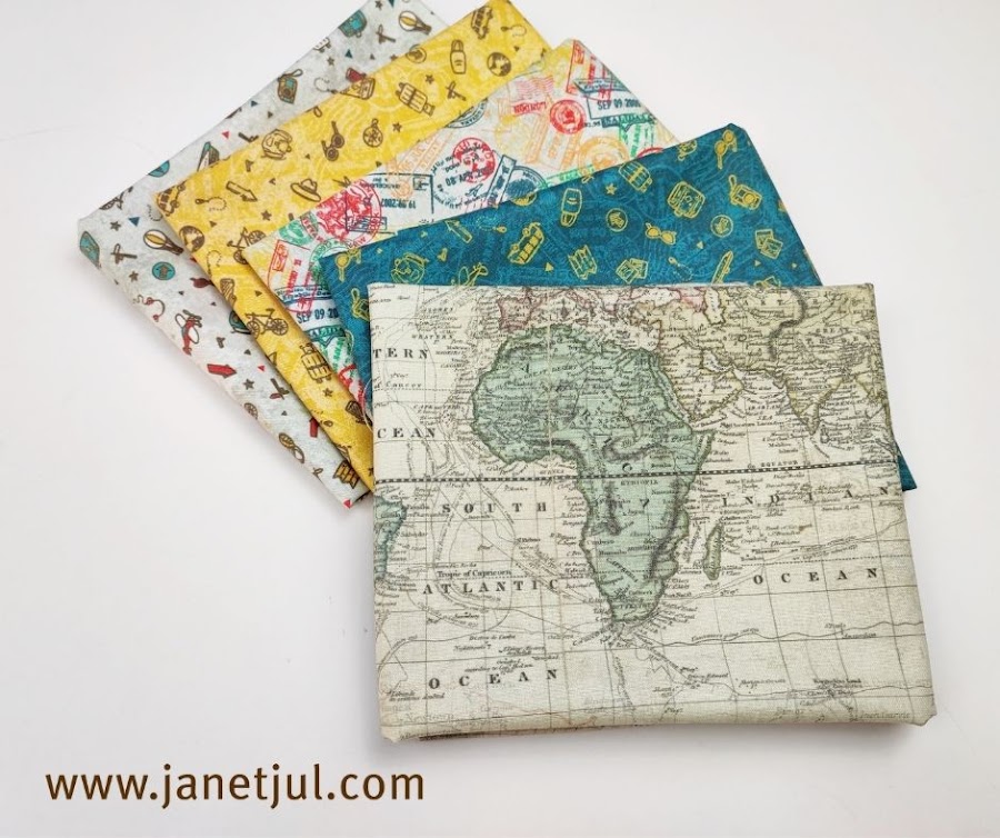 Y si quieres, también puedes comprar un pack con un Fat Quarter de 50x55 cm. de cada tela de esta colección de viajes por tan sólo 14,95€: