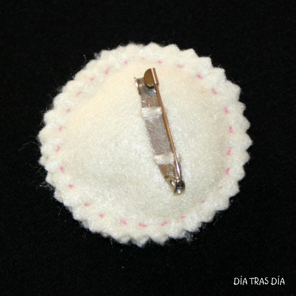 En otras ocasiones que he he realizado la Matrioska con mensaje, lo he hecho sobre un broche con forma de corazón, pero esta vez, como el mensaje era un poco más extenso, lo he dispuesto sobre un broche en forma de círculo, para disponer de mayor espacio útil de escritura.