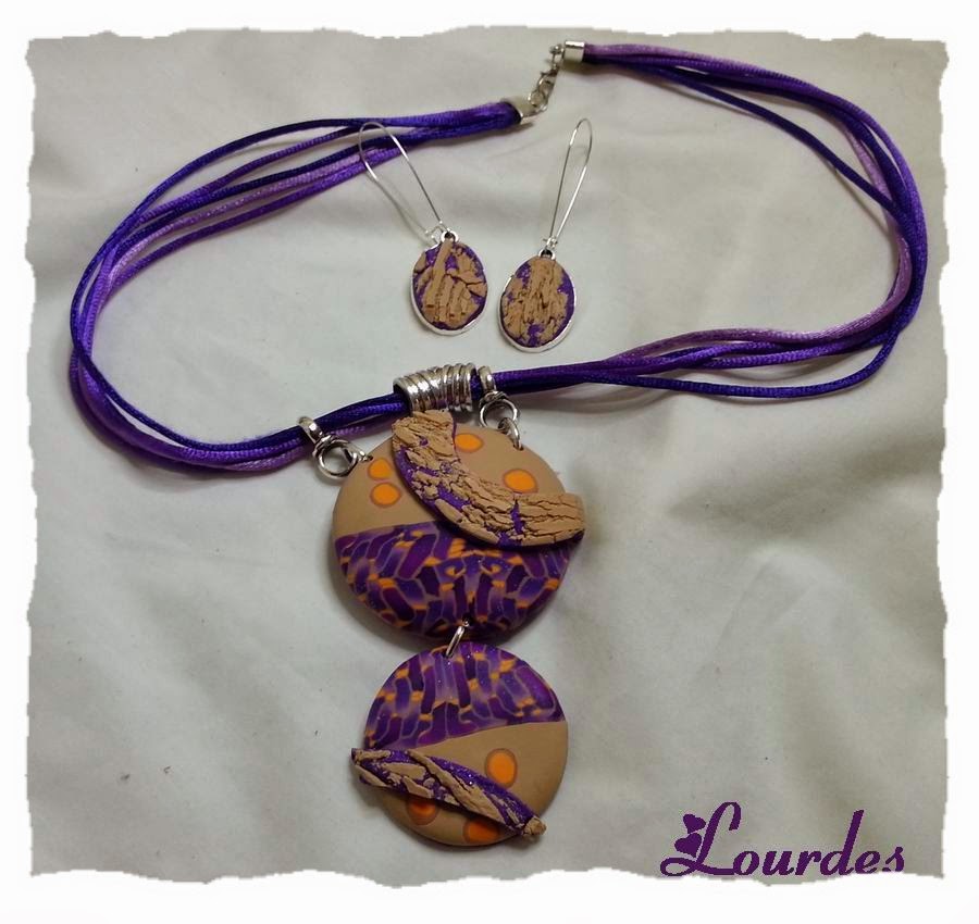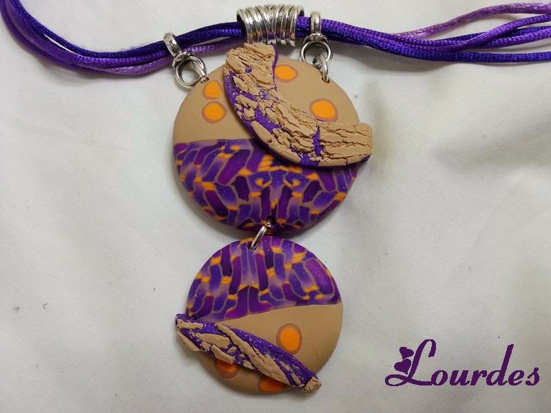 Utilizando mi nueva murrina de la entrada anterior, os dejo este conjunto inspirado en otro que realicé hace ya tiempo. Las piezas están lijadas y pulidas en la parte de la murrina y he conservado el mate en su parte lisa lo que le proporciona un bonito contraste Observa de cerca el efecto que hacen los degradados He completado el conjunto con anillo y pendientes a juego.
