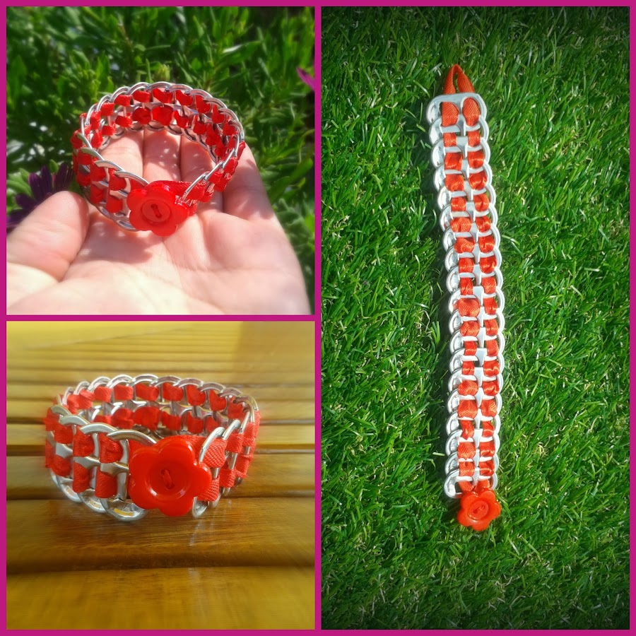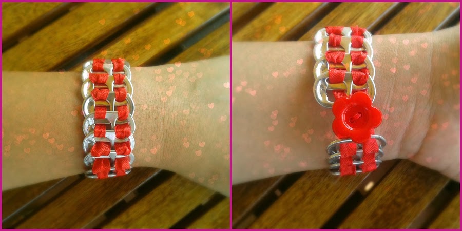 Hoy quiero aprovechar y hacer una entradita rápida para enseñaros la última pulsera que he hecho con anillas de lata de refrescos, ésta vez en rojo. Espero que os guste: