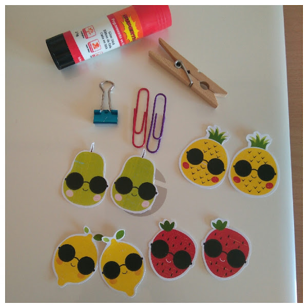 Recortamos y lo pegamos en los distintos lugares. Pinzas, clips...