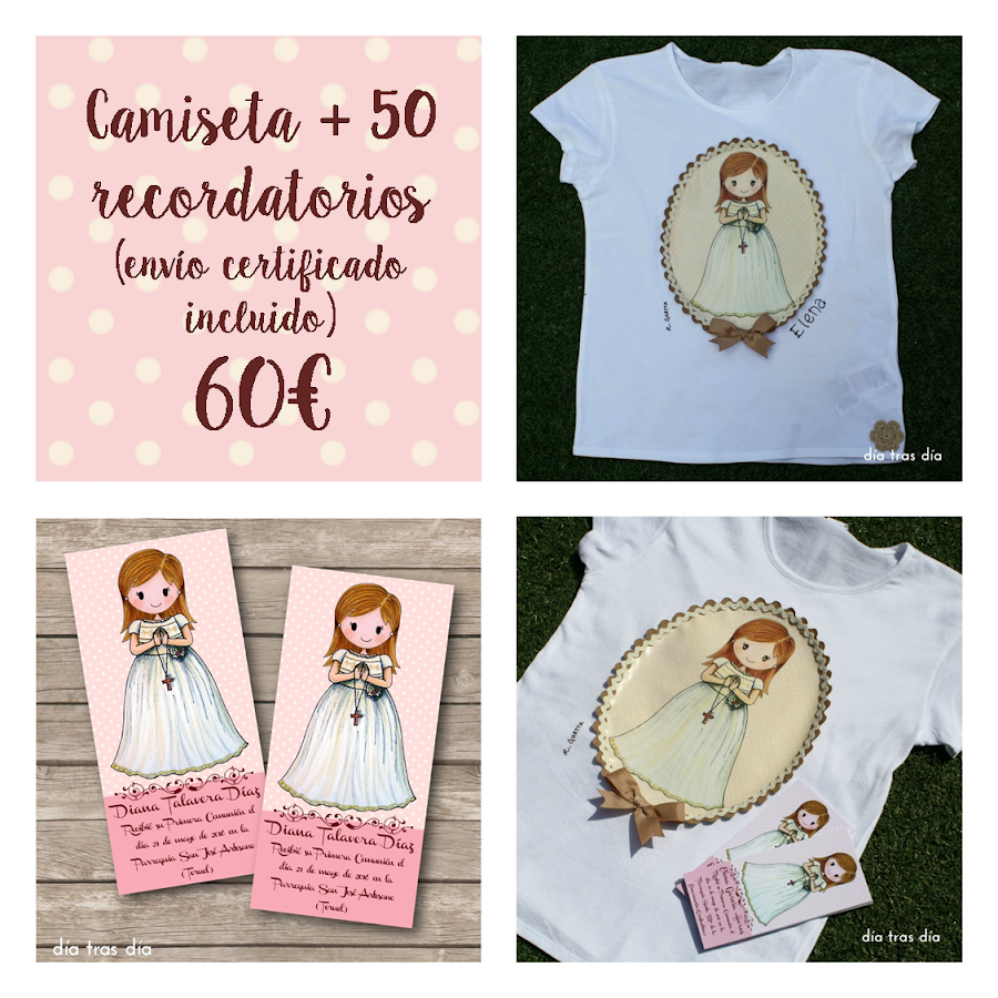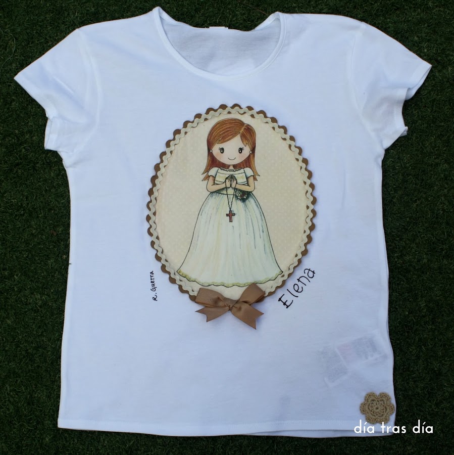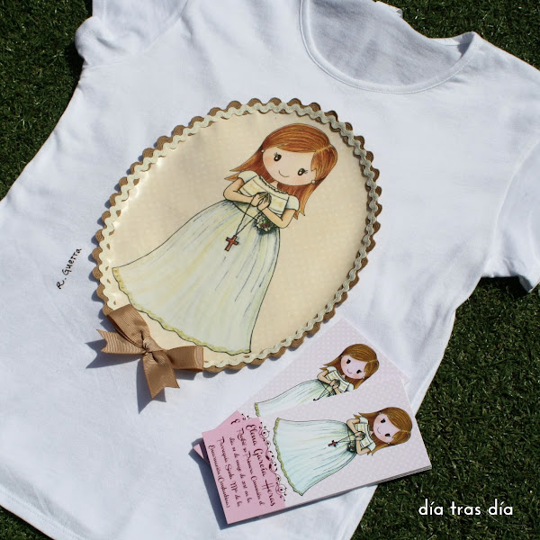 Así es como ha resultado este nuevo modelo de camiseta, en el que el dibujo es el mismo que aparece en los recordatorios. Pero se sigue manteniendo el mismo diseño tipo medallón, que tanto gusta a las niñas: