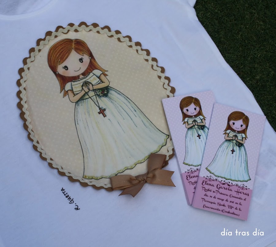 Ya había hecho recordatorios, tanto para niños como para niñas, y camisetas inspiradas en los dibujos plasmados en los recordatorios. Pero quería hacer un modelo de camiseta que fuese con el dibujo exacto de los recordatorios, para que formasen un conjunto.