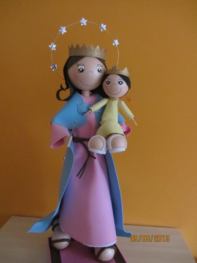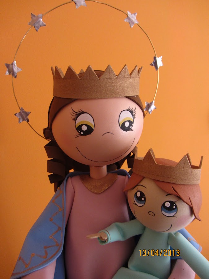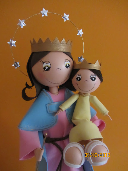 Empezamos ya hace casi un año a crear quica´s con estas imagenes...Maria Auxiliadora, D. Bosco y Santo Domingo Savio, tanto en broches como en tamaño grande (un metro de altura).