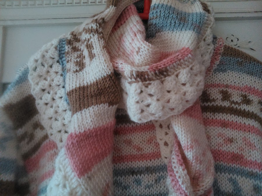 ...ya os conté en otra entrada qué andaba probando nuevas lanas ....salir de katia o de lanas stop no sabia...decir qué lanas katia es para mí una de las mejores en calidad y variedad de hilos y lanas...pero esta vez le toco el turno a una nueva lana ...me gusto la combinación de sus colores azul...rosa ..beig...camel pero lo qué no sabía era cómo iba a quedar...un punto jacquard y rayas....