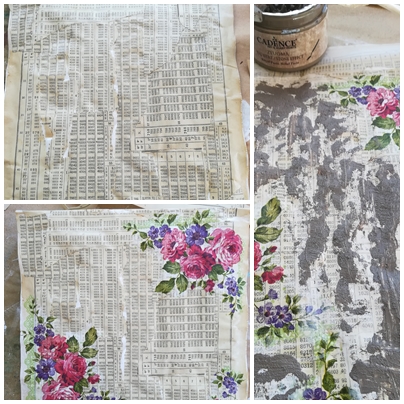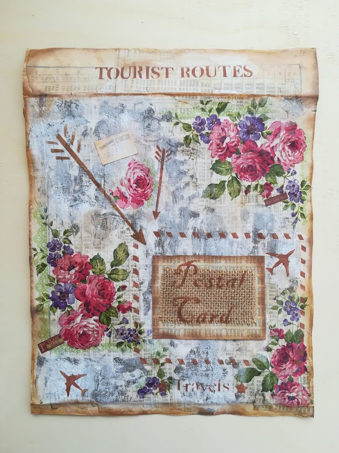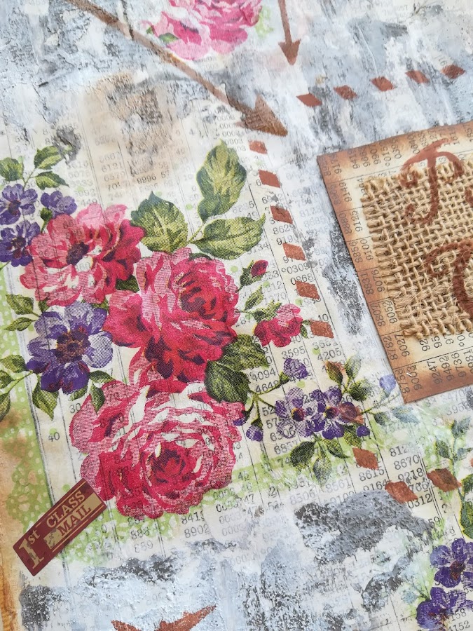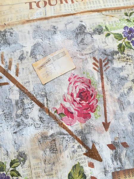 Luego estarcidos con detalles de distintas plantillas y sombreado con tinta por los bordes.